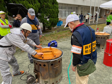 当該協議会は、炊き出し担当。ガスバーナーが上手く作動しなかった。