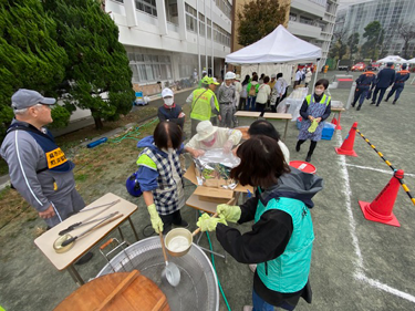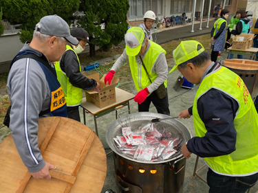 当該協議会は、炊き出し担当。ガスバーナーが上手く作動しなかった。